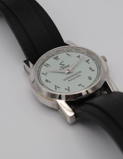 The Ambassador is powered by a self-winding, Swiss, 25-jewell ETA calibre, with a 40h power reserve that ensures your watch keeps ticking while on standby. Each dial is hand-painted with a porcelain composite, with prominently applied numerals that provide maximum visibility from every angle. Protecting the dial is a domed sapphire crystal, scratch resistant and worry-free. Our watches are shock-proof, and moisture resistant, making them suitable for sport and an active lifestyle. The Ambassador model is splash-resistant, but is not waterproof.