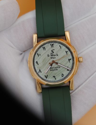 All of our watches are hand-assembled in Vienna, Austria, with 95% of parts sourced from the EU and Switzerland. Our cases are professionally cast and hand-finished in France, which undergo a relentless quality and performance assessment before being allocated to a build. We manufacture all of our dials completely in-house under a single roof, and have developed our own unique processes to ensure that our dials will age gracefully through multiple generations of wear. It takes three weeks before a dial is fitted into an Ambassador watch. We can only produce each dial colour once, which is why we have pre-made a limited quantity of dial specifically for the Ambassador line. Once our dial stock runs out, we will produce a new colour-way.
