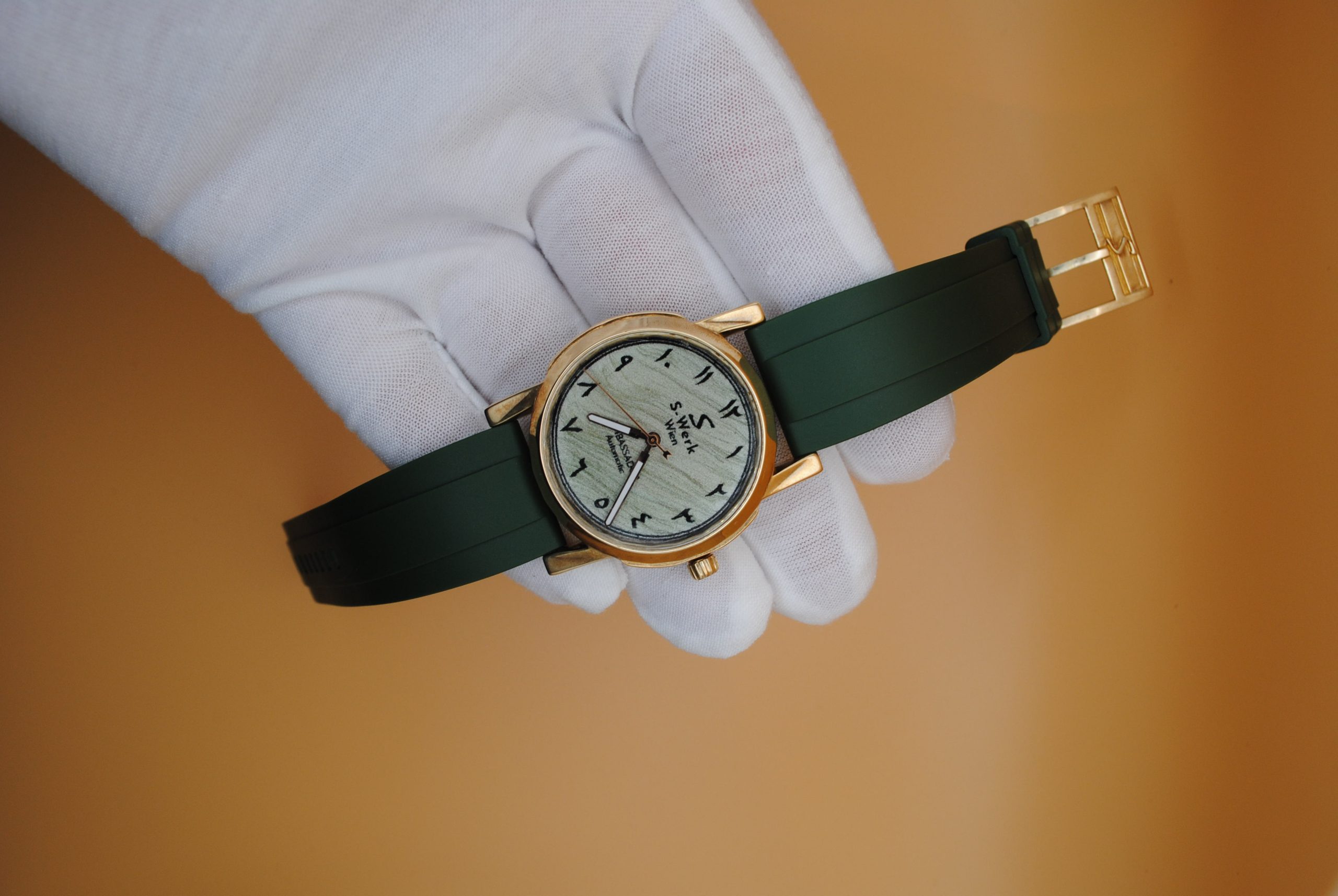 Each watch is made on-demand, with exception of select in-stock models, which allows us to offer a wide range of flexibility when it comes to your choice of materials and colours. Our watch cases are cast from brass or silver, and are available in yellow gold and rhodium plating. We offer four different dial finishes, and two variations of numerals.