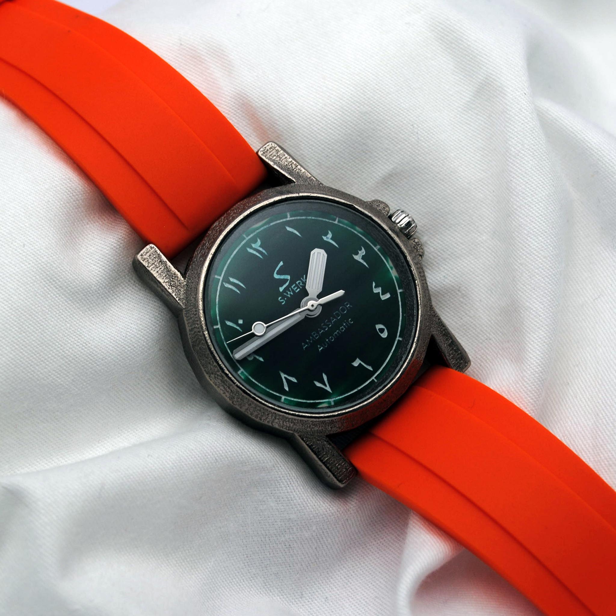 All of our watches are hand-assembled in Vienna, Austria, with 95% of parts sourced from the EU and Switzerland. Our cases are professionally cast and hand-finished in France, which undergo a relentless quality and performance assessment before being allocated to a build. We manufacture all of our dials completely in-house under a single roof, and have developed our own unique processes to ensure that our dials will age gracefully through multiple generations of wear. It takes three weeks before a dial is fitted into an Ambassador watch. We can only produce each dial colour once, which is why we have pre-made a limited quantity of dial specifically for the Ambassador line. Once our dial stock runs out, we will produce a new colour-way.