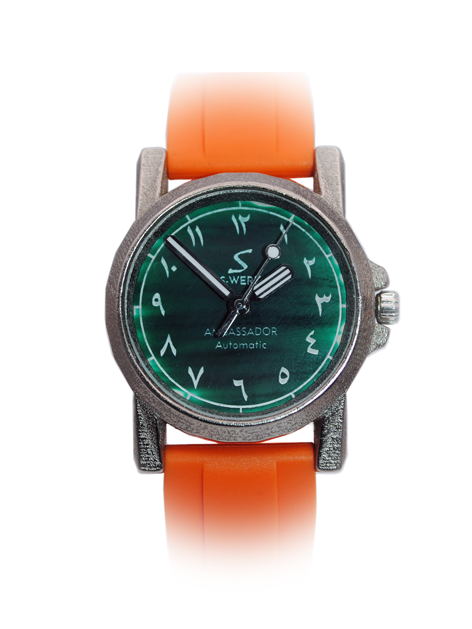 The Ambassador is powered by a self-winding, Swiss, 25-jewell ETA calibre, with a 40h power reserve that ensures your watch keeps ticking while on standby. Each dial is hand-painted with a porcelain composite, with prominently applied numerals that provide maximum visibility from every angle. Protecting the dial is a domed sapphire crystal, scratch resistant and worry-free. Our watches are shock-proof, and moisture resistant, making them suitable for sport and an active lifestyle. The Ambassador model is splash-resistant, but is not waterproof.