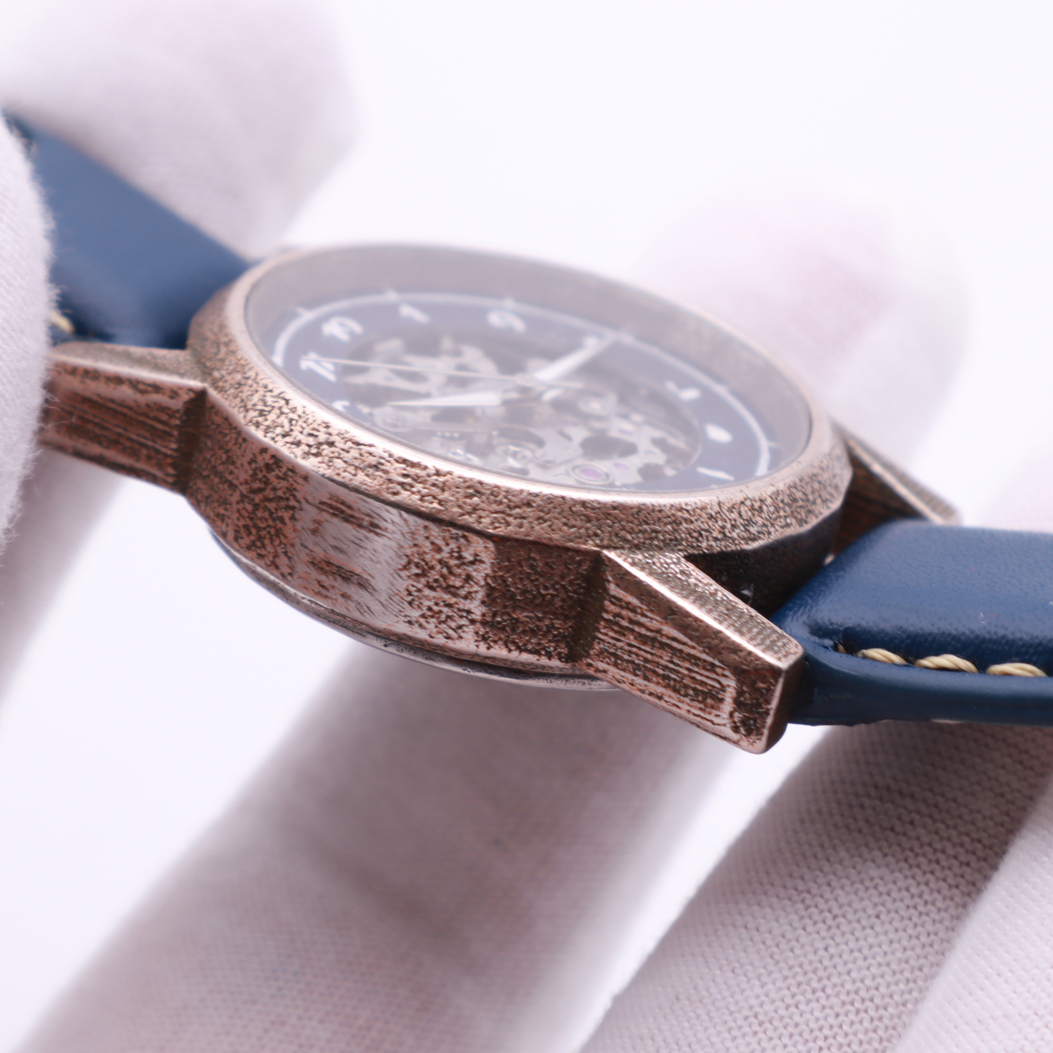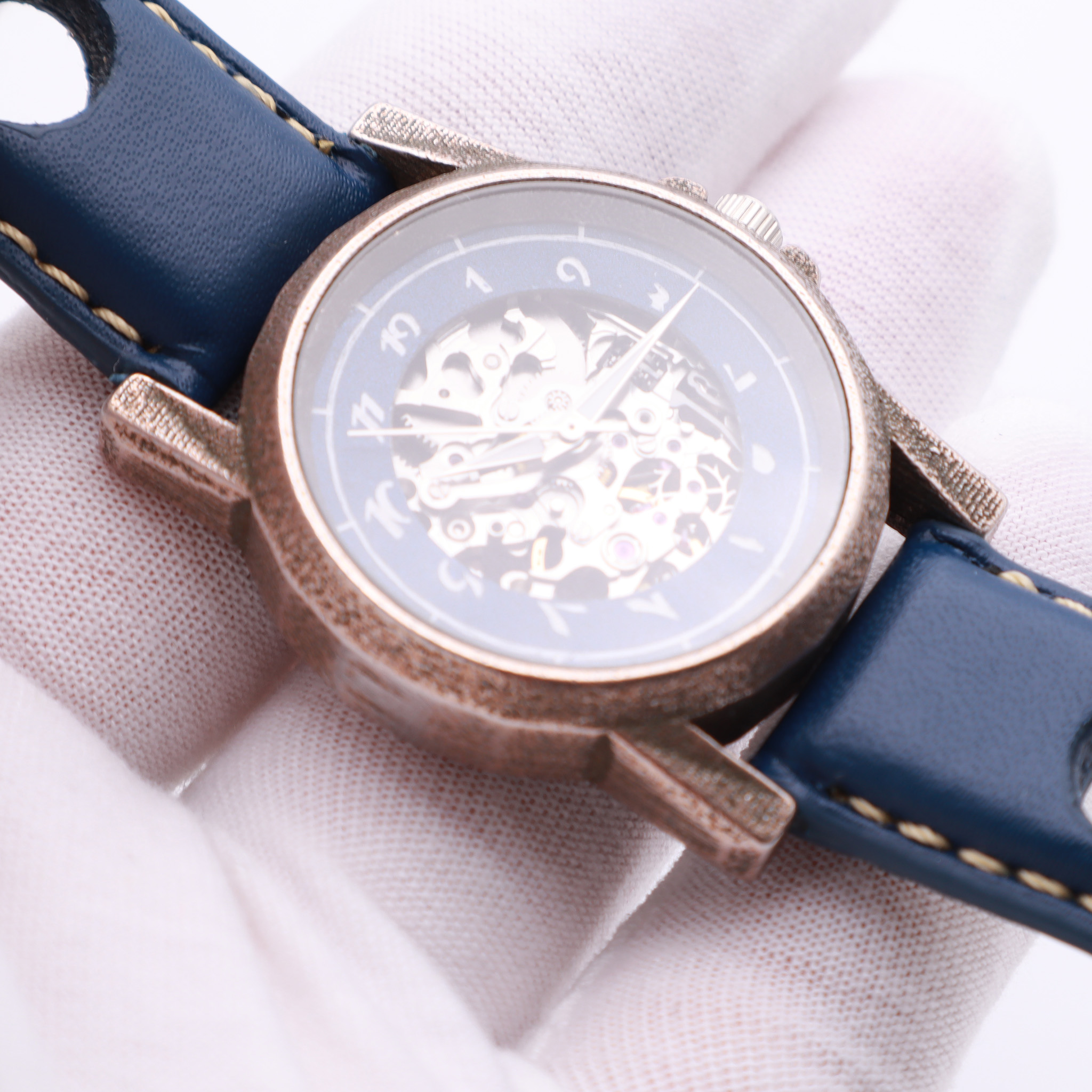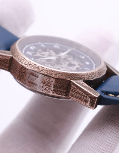 Each watch is made on-demand, with exception of select in-stock models, which allows us to offer a wide range of flexibility when it comes to your choice of materials and colours. Our watch cases are cast from brass or silver, and are available in yellow gold and rhodium plating. We offer four different dial finishes, and two variations of numerals.