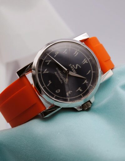 The Ambassador is powered by a self-winding, Swiss, 25-jewell ETA calibre, with a 40h power reserve that ensures your watch keeps ticking while on standby. Each dial is hand-painted with a porcelain composite, with prominently applied numerals that provide maximum visibility from every angle. Protecting the dial is a domed sapphire crystal, scratch resistant and worry-free. Our watches are shock-proof, and moisture resistant, making them suitable for sport and an active lifestyle. The Ambassador model is splash-resistant, but is not waterproof.